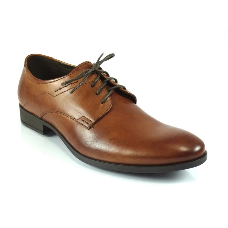 Derby Koniakowe Pilpol 0031 to eleganckie derby plain toe w segmencie regular, wykonane z wysokiej jakości skóry naturalnej w odcieniu koniaku. Model z otwartą przyszwą, gładkim noskiem i lekką podeszwą łączy klasyczny styl z codziennym komfortem użytkowania.