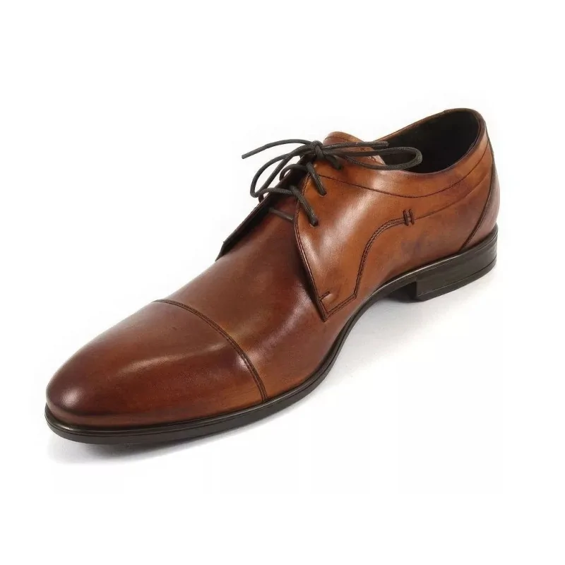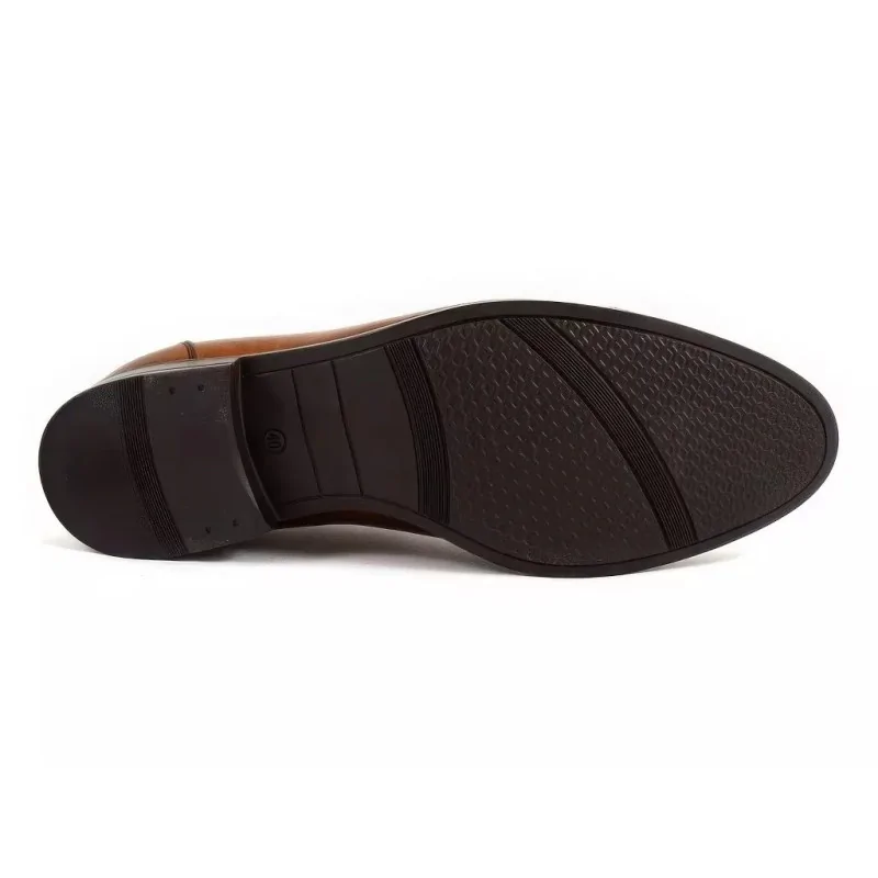 Smukłe, lekko wydłużone kopyto nadaje sylwetce lekkości, a starannie wyprofilowana podeszwa zapewnia stabilność i wygodę nawet podczas wielogodzinnego noszenia. Derby męskie koniakowe w tej odsłonie łączą klasyczny design z nowoczesnym komfortem.