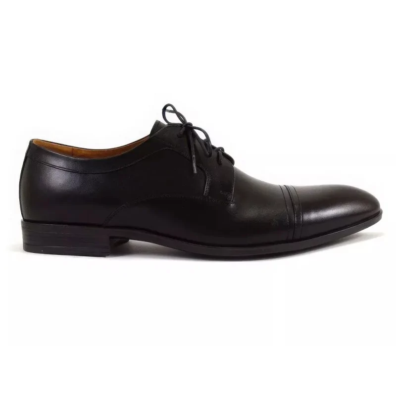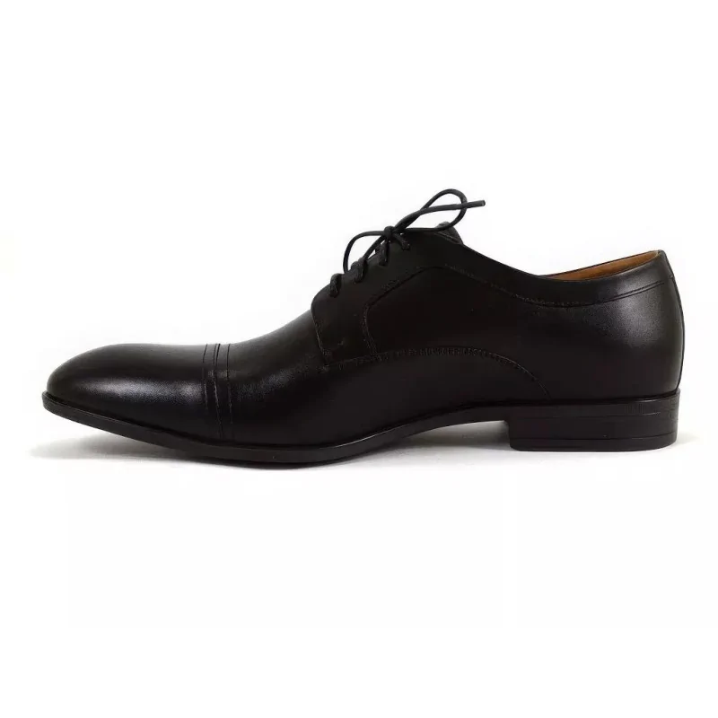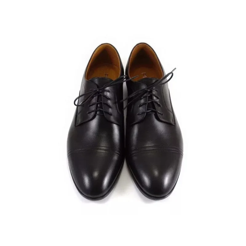 Derby męskie czarne 1709 regular to klasyczne buty derby męskie czarne wykonane ze skóry naturalnej. Model posiada nosek typu cap toe oraz cztery pary eyeletów, co podkreśla jego formalny charakter.
