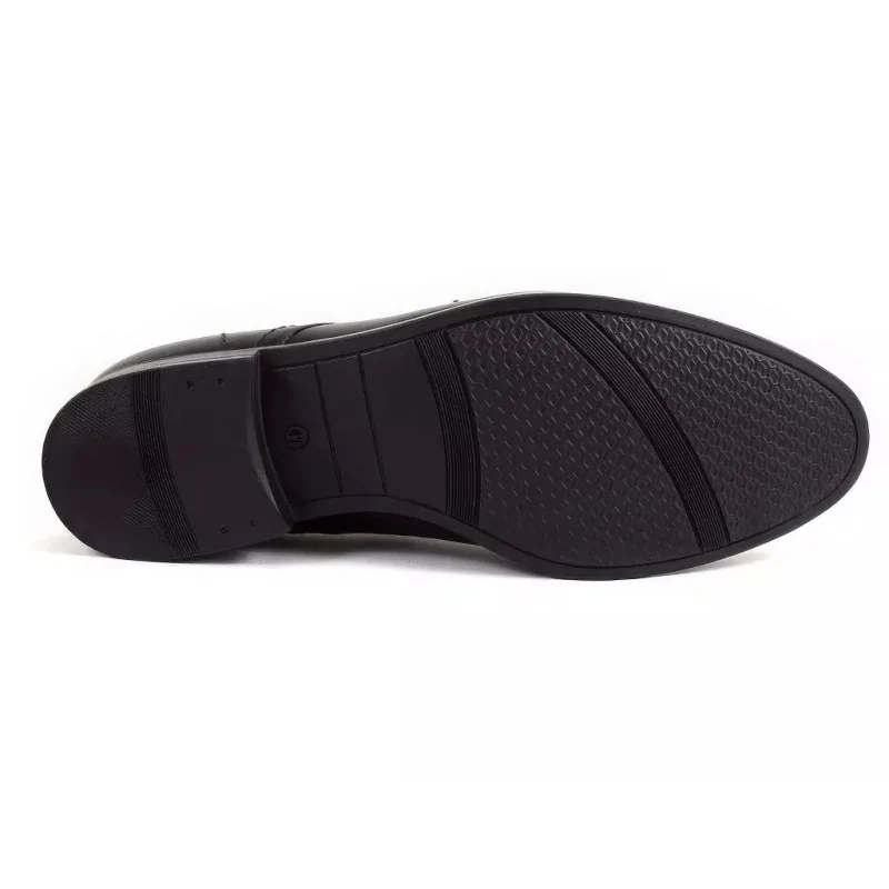 Derby męskie czarne Pilpol 1679 wyposażono w solidną podeszwę gumową o podwyższonej odporności na ścieranie. Zapewnia ona dobrą przyczepność oraz stabilność kroku, co ma szczególne znaczenie w codziennym użytkowaniu.