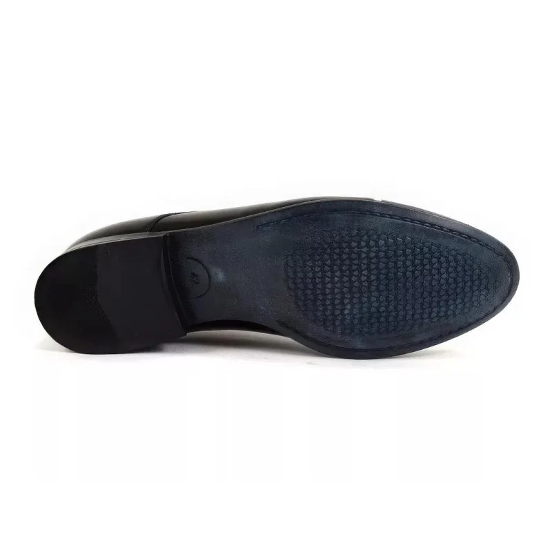 Nakładka na nosku podkreśla oficjalny charakter obuwia, czyniąc je bardziej formalnym niż modele typu plain toe. Derby męskie czarne 1604 to bezpieczny i profesjonalny wybór do środowiska biznesowego.