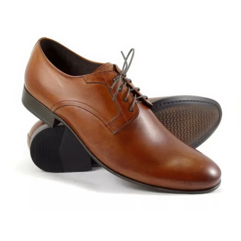 Derby męskie koniak Pilpol 1672 to model z linii Regular, stworzony z myślą o codziennej elegancji i wygodzie. Konstrukcja typu derby z otwartą przyszwą zapewnia łatwiejsze dopasowanie do stopy oraz większy komfort niż modele o zamkniętej konstrukcji.