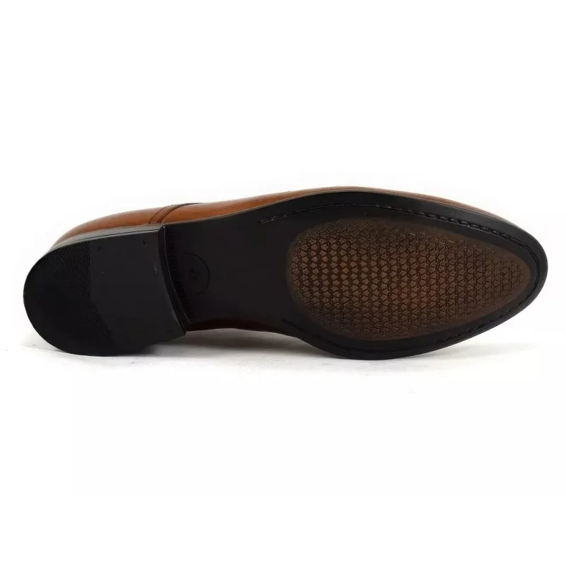 W przeciwieństwie do modeli na skórzanej podeszwie, derby męskie koniak z linii Regular wyposażone są w trwałą podeszwę o zwiększonej odporności na ścieranie. To rozwiązanie bardziej praktyczne w warunkach miejskich.