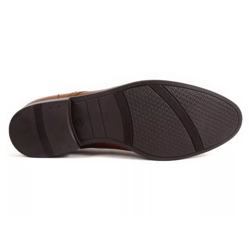 Derby męskie koniak Pilpol 1679 wyposażono w solidną podeszwę gumową o zwiększonej odporności na ścieranie. To rozwiązanie praktyczne, które sprawdza się w codziennym użytkowaniu, zapewniając dobrą przyczepność oraz stabilność kroku.