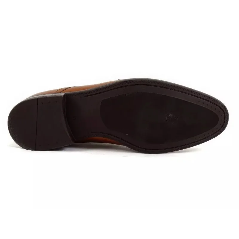 Derby męskie koniak Pilpol PC010 wyposażone są w solidną podeszwę gumową o zwiększonej odporności na ścieranie. Zapewnia ona dobrą przyczepność oraz stabilność kroku, co czyni model praktycznym rozwiązaniem do codziennego użytkowania.