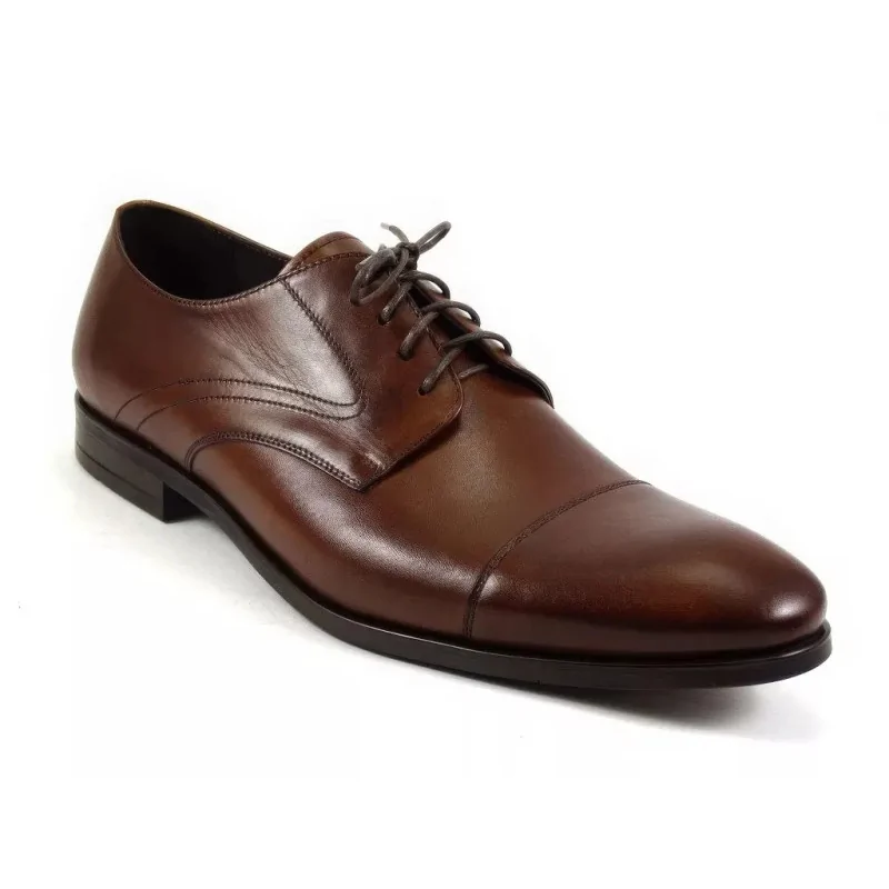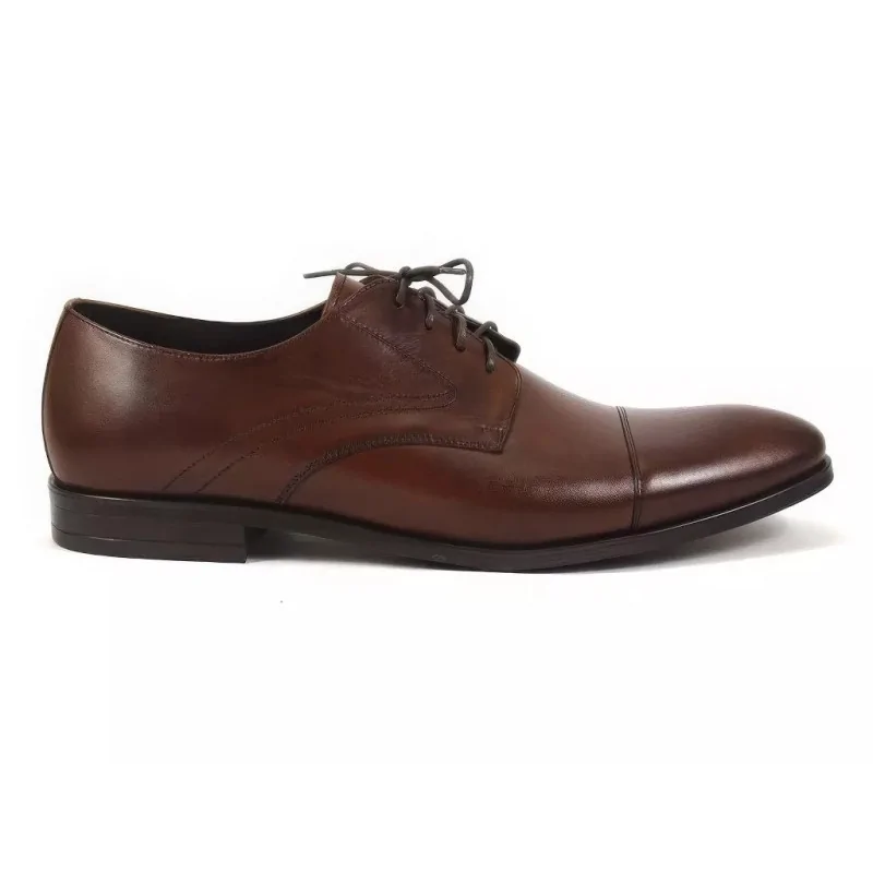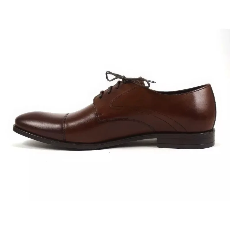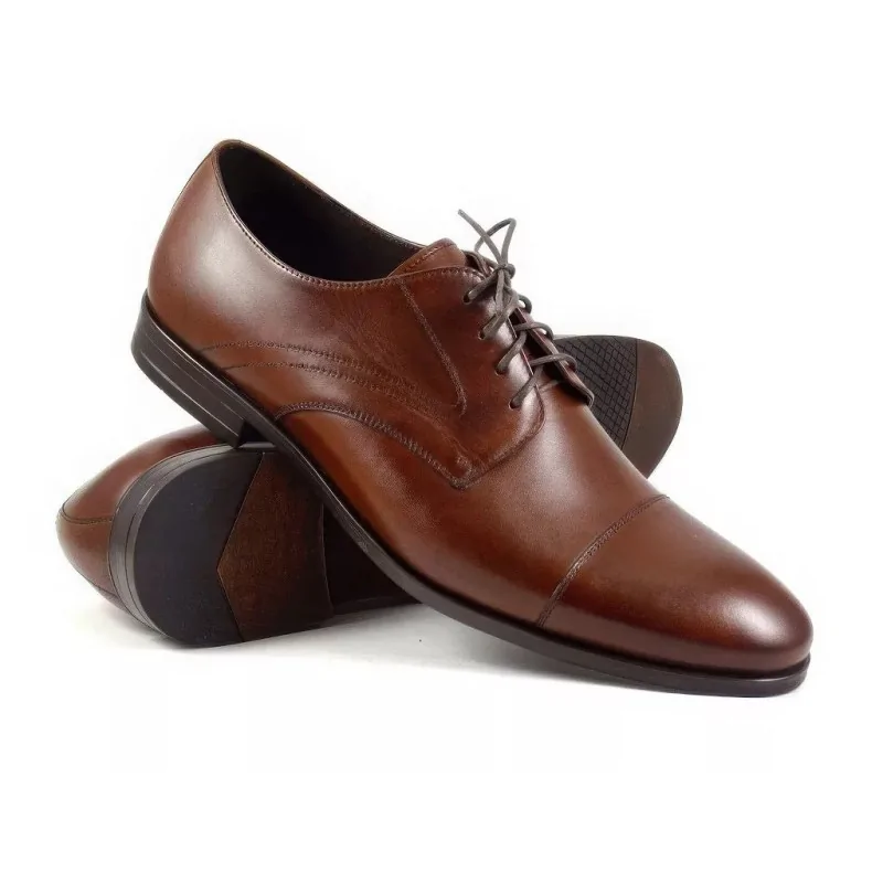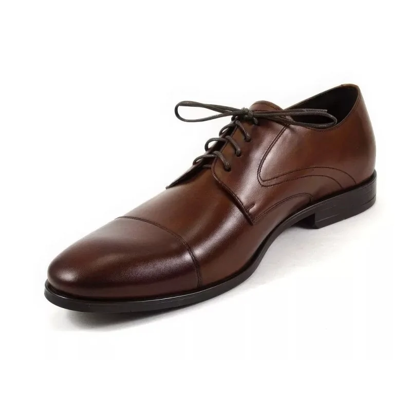 Fason derby z otwartą przyszwą zapewnia lepsze dopasowanie do stopy oraz wyższy komfort użytkowania w porównaniu do modeli z zamkniętą przyszwą. Dzięki temu derby orzechowe męskie doskonale sprawdzają się podczas długiego noszenia w pracy, na spotkaniach biznesowych oraz podczas uroczystości wymagających eleganckiego obuwia.