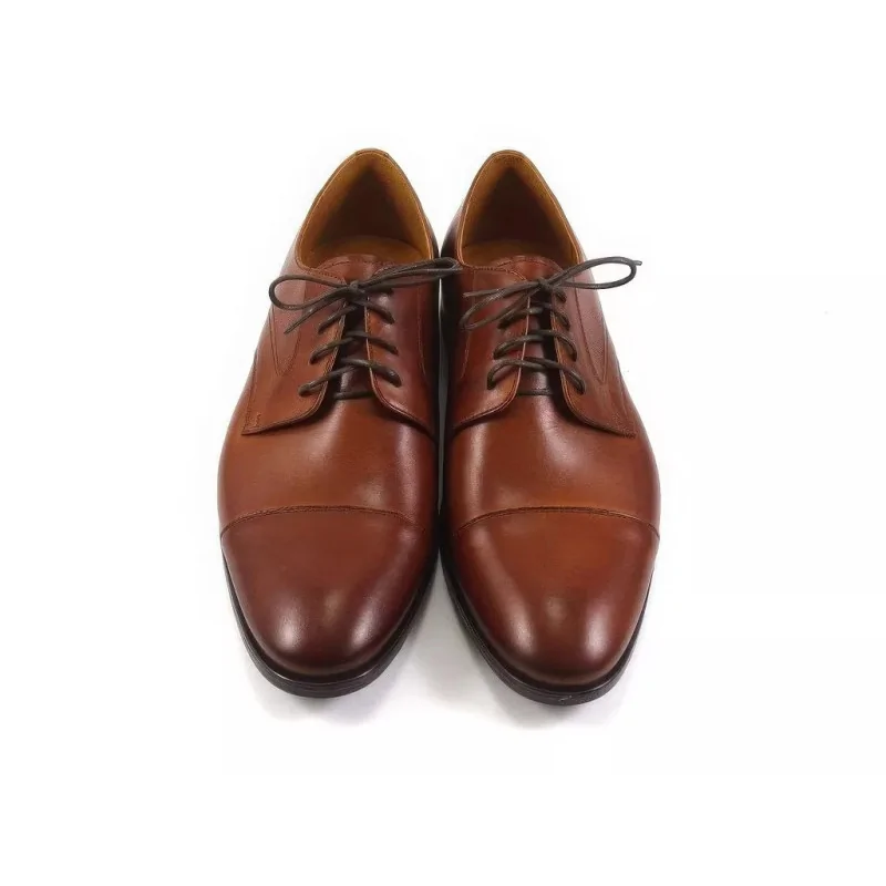 Konstrukcja typu derby z otwartą przyszwą gwarantuje wygodne dopasowanie do stopy oraz wysoki komfort noszenia przez cały dzień. Charakterystyczna perforowana faktura na bocznych panelach cholewki nadaje modelowi nowoczesnego, stylowego wyglądu, zachowując jednocześnie elegancki charakter. Dzięki temu eleganckie derby koniakowe męskie doskonale sprawdzają się w stylizacjach biznesowych oraz półformalnych.