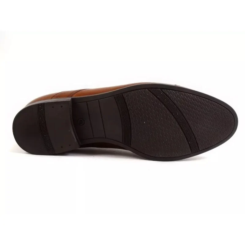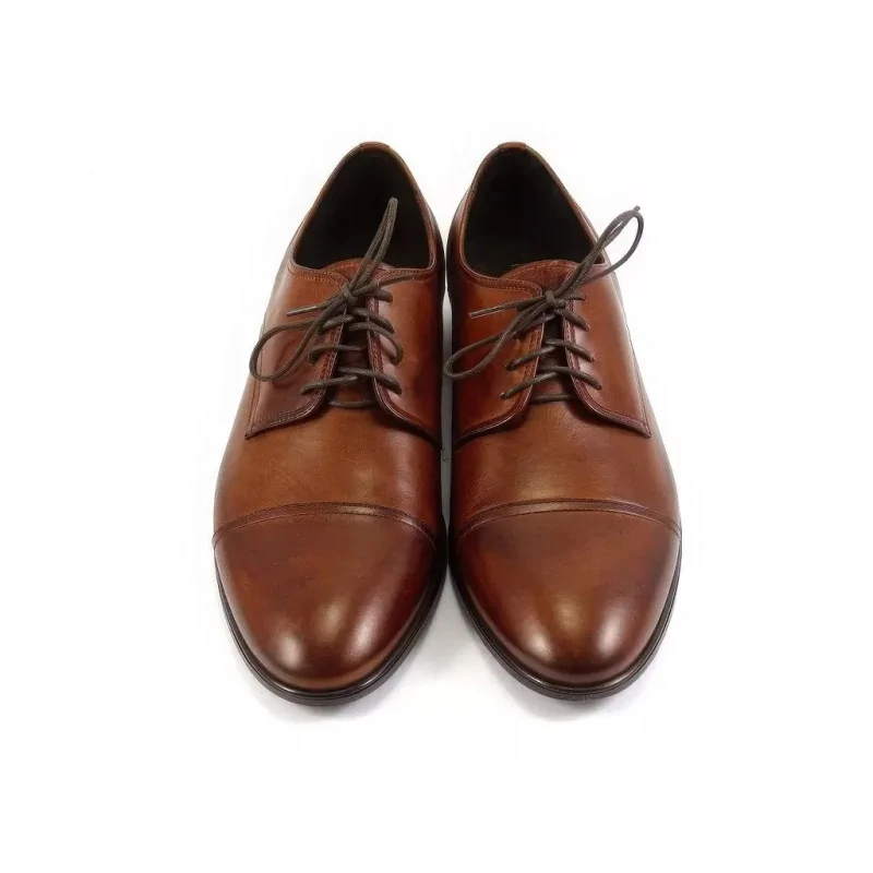 Konstrukcja typu derby z otwartą przyszwą zapewnia lepsze dopasowanie do stopy oraz wysoki komfort noszenia przez cały dzień. Nakładany nosek typu cap toe podkreśla elegancki charakter obuwia i nadaje mu bardziej formalny wygląd. Dzięki temu eleganckie derby koniakowe męskie doskonale sprawdzają się jako buty męskie do pracy, biura oraz na spotkania biznesowe.